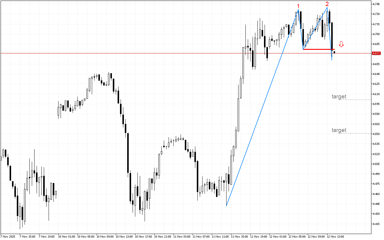 Natural Gas графикасында анықталған паттерн өсу импульс әлсіздігін көрсетеді.Графикада екі қайтара жоғарғы шек классикалық айналма паттерн қалыптасуы байқалады. Паттернді растаудың негізгі сигналы 4.677 деңгейіндегі екі шыңның арасындағы минимум арқылы жүргізілген…