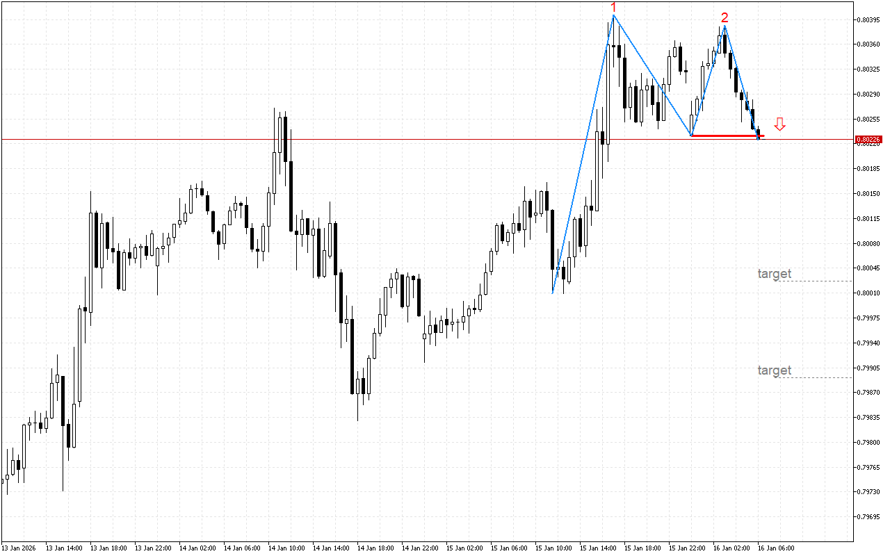 USDCHF M30: Қос түп паттерн төмен импульстің ыдырауын білдіреді